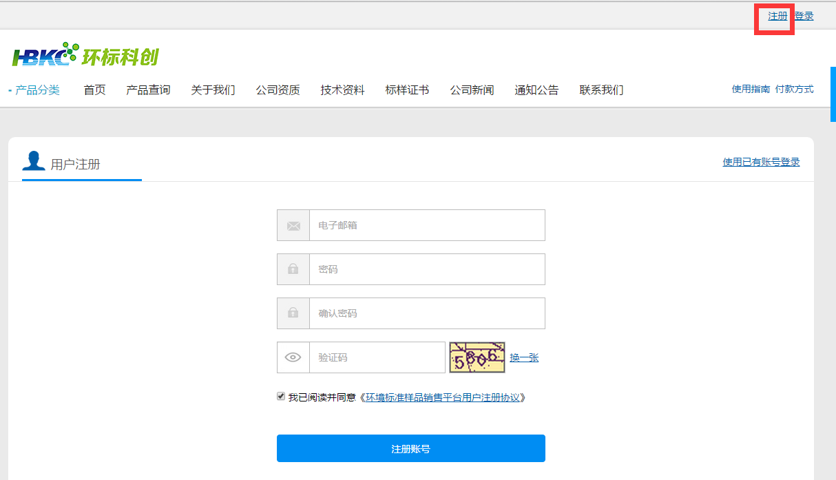 答:打開網頁后,請點擊頁面右上角“注冊”項注冊新會員,*為必填項,一個郵箱只能注冊一個賬戶。您注冊成功后,環(huán)標科創(chuàng)商城將為您開通一個賬戶,作為您在環(huán)標科