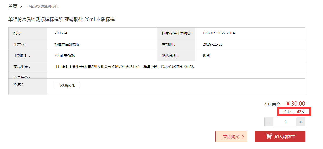 本平臺是北京環(huán)標科創(chuàng)環(huán)境科技發(fā)展有限責任公司的唯一官方網上商城。我們致力于為您帶來高效便捷的一站式服務,為您提供環(huán)境標準樣品及相關產品的信息查詢、